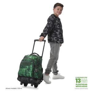 ¡Ofrece a tu pequeño, funcionalidad y resistencia con la mochila con ruedas Renglon! Este modelo está fabricado con lona RPET a partir de 13 botellas recicladas y cuenta con un compartimiento porta PC de 15.4". Incluye un organizador con portallaves, ruedas de goma de alta resistencia y bomper de protección contra impactos. Su manija telescópica y protector de correas ofrecen un uso práctico y seguro. ¡Cómpralo ya!