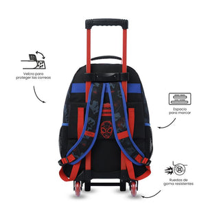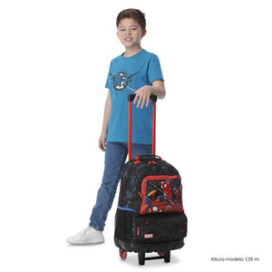 ¡Lleva la fuerza de tu superhéroe favorito a cada clase! La Mochila para niño con ruedas Spiderman Hero grande cuenta con un diseño impactante con estampado de alta densidad, compartimiento espacioso, correas acolchadas, bolsillos portabotellas y forro interior hecho con botellas recicladas RPET. Incluye un llavero en goma de Spiderman que acompaña cada misión. ¡Haz que sus días estén llenos de acción!