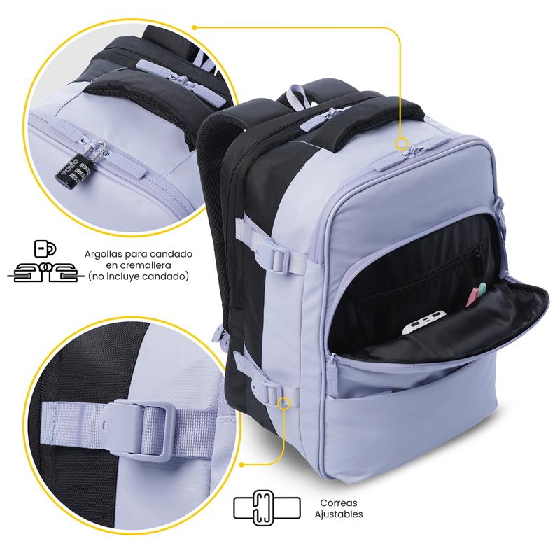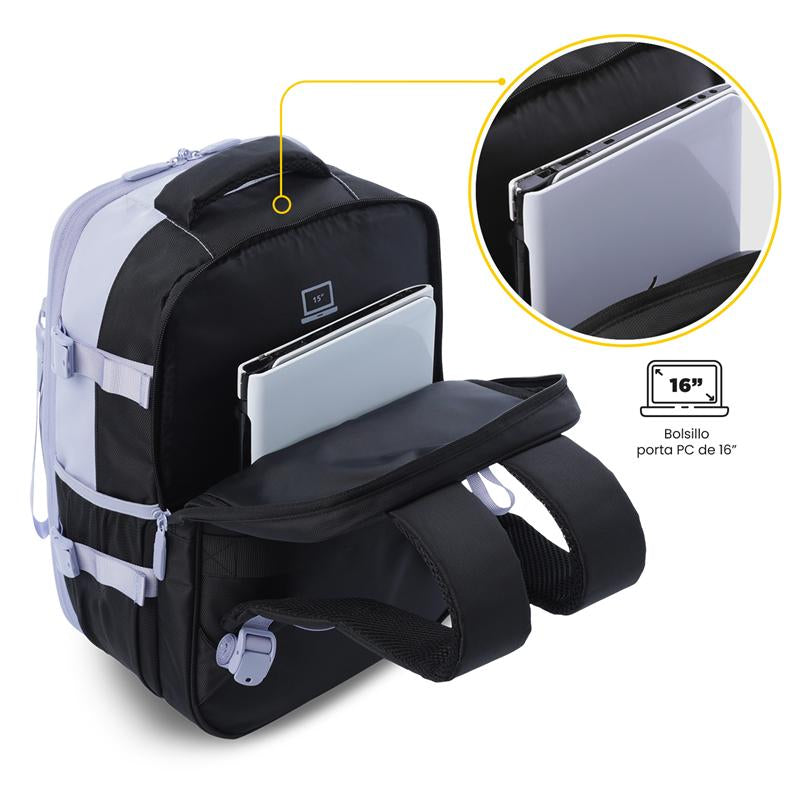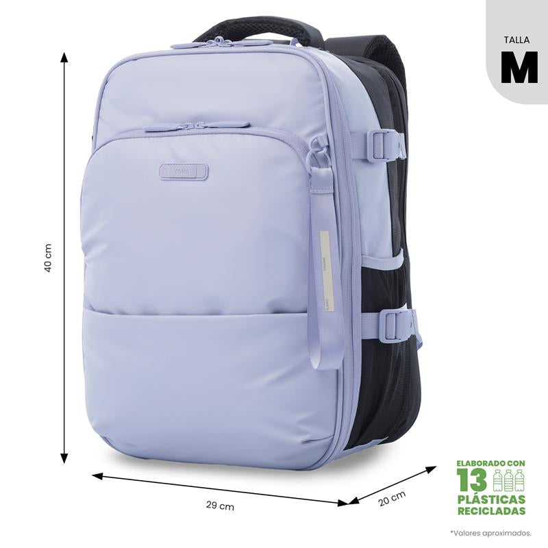 ¡La Mochila viajera Trip es perfecto para vuelos en cualquier aerolínea del país! Su diseño compacto permite llevarlo como artículo personal, con espacio para hasta 5 mudas de ropa según la organización del viajero. Incluye un bolsillo especial para un computador de 15 pulgadas, correas de ajuste y compresión para mayor estabilidad y un llavero de marcación que facilita su identificación en aeropuertos. ¡Viaja ligero y con todo lo necesario!