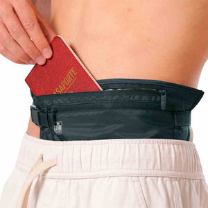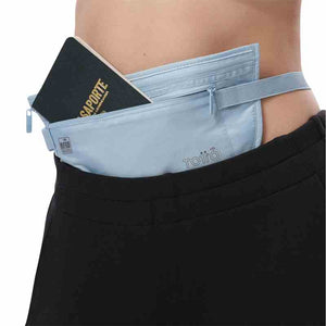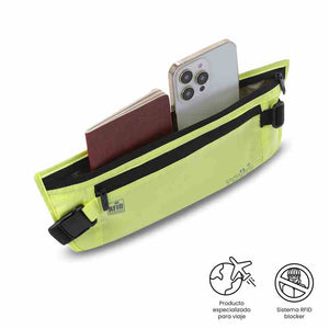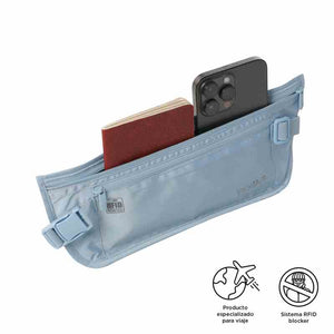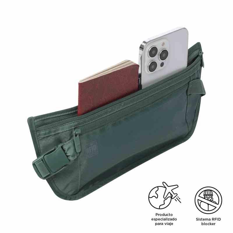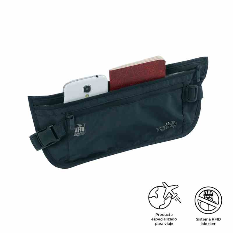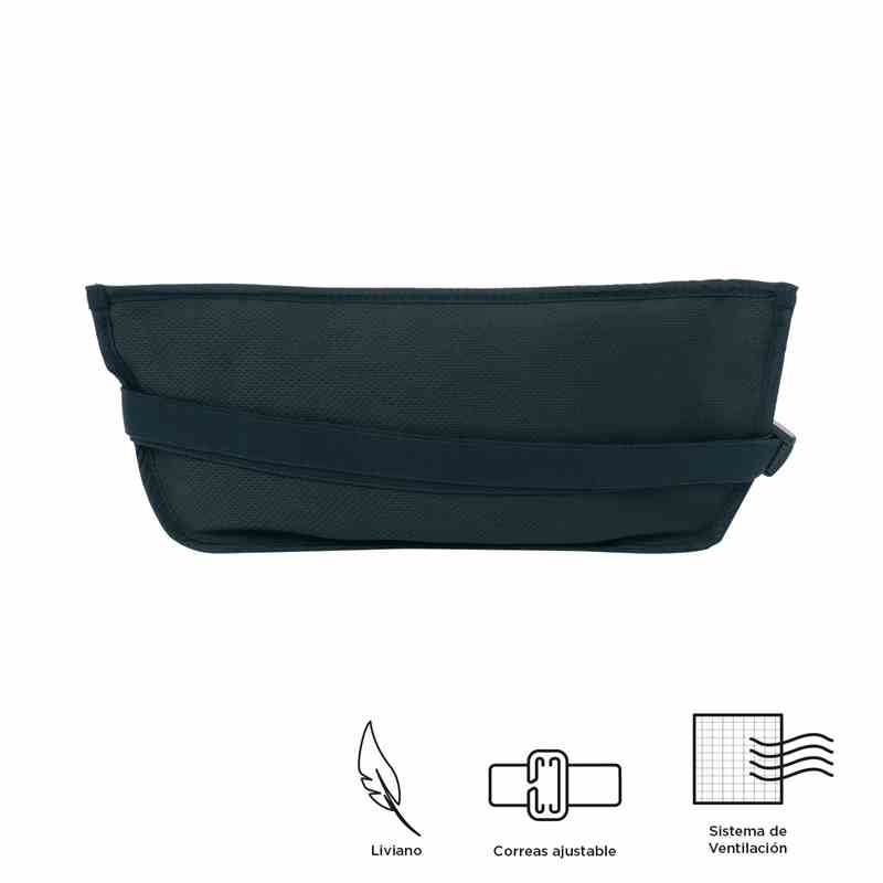 ¡La riñonera más práctica a la hora de entrenar, ir de viaje o para el día a día! Es liviano, cómodo e ideal para llevar debajo de la ropa. Cuenta con sistema de seguridad RFID para evitar el robo de información de tarjetas. Su material frontal es poliéster y la parte posterior es transpirable por lo que suele ir al contacto directo con la piel. Tiene dos bolsillos con apertura en cremallera y puller metálico. Su forma y tamaño permiten llevar el pasaporte con porta pasaporte sin que se dañe. Su correa es elástica y ajustable con una hebilla que va en el frente para mayor practicidad